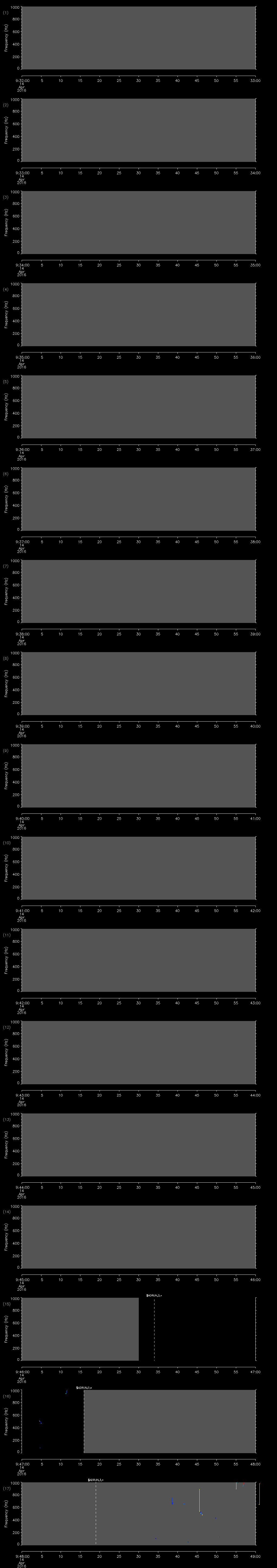 | Date/time | Sei whale | Fin whale | Right whale | Humpback whale | Other | Duration |