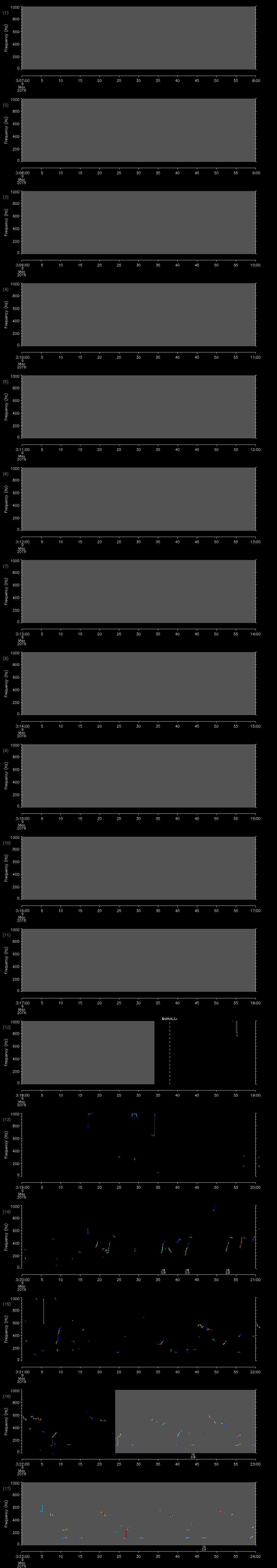 | Date/time | Sei whale | Fin whale | Right whale | Humpback whale | Other | Duration |