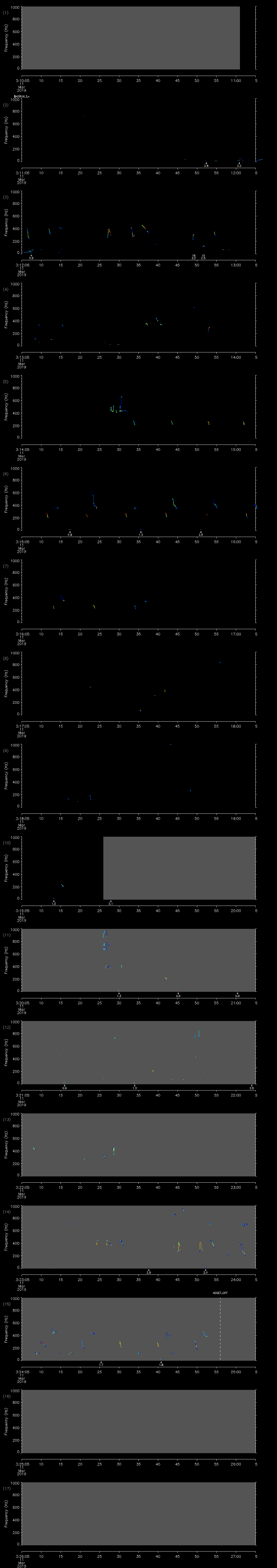 - MUTEON: the hydrophone is muted to assess system noise and to provide a time mark in the audio recording