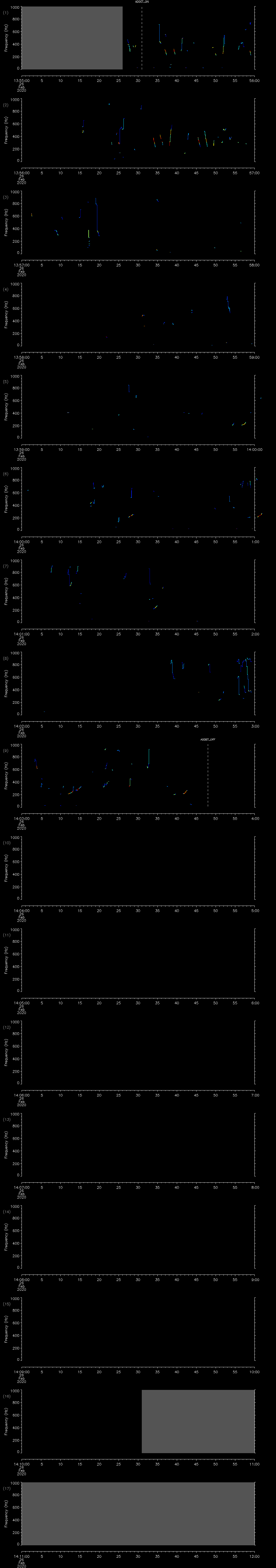 - MUTEON: the hydrophone is muted to assess system noise and to provide a time mark in the audio recording