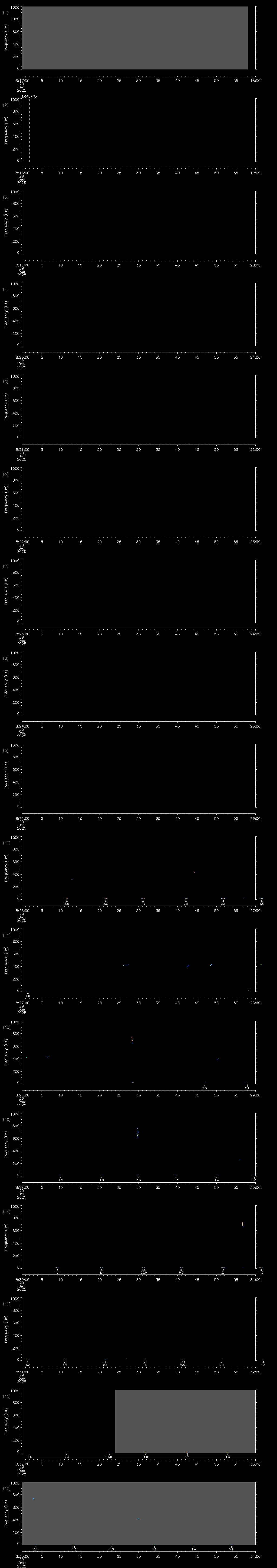 | Date/time | Sei whale | Fin whale | Right whale | Humpback whale | Other | Duration |