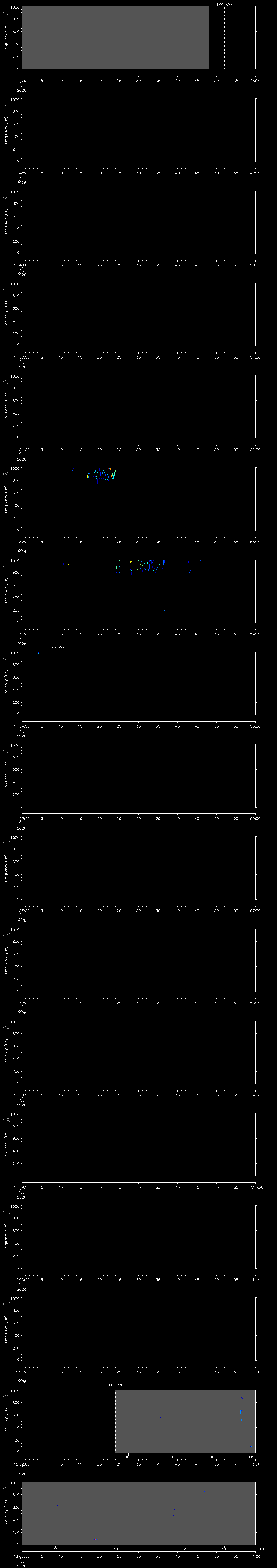 - MUTEON: the hydrophone is muted to assess system noise and to provide a time mark in the audio recording