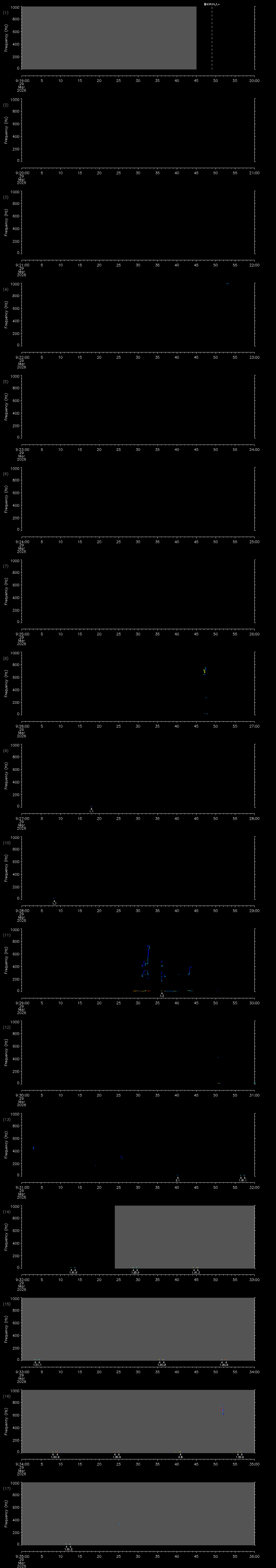 | Date/time | Sei whale | Fin whale | Right whale | Humpback whale | Other | Duration |