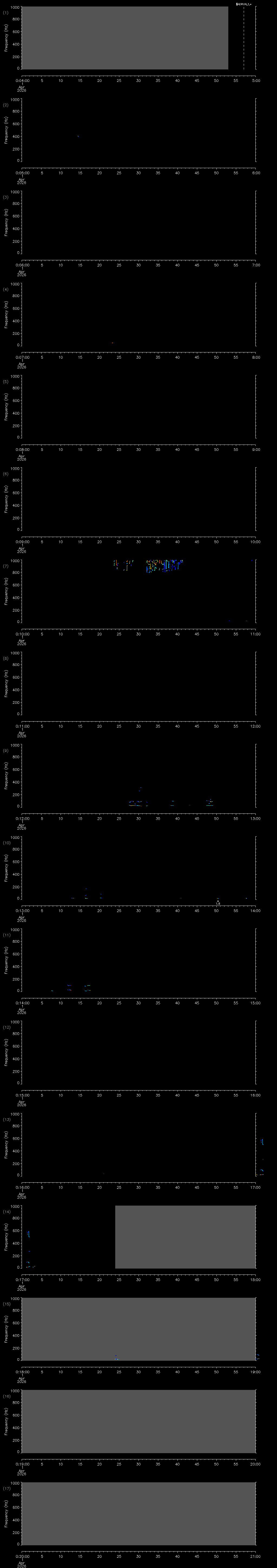 | Date/time | Sei whale | Fin whale | Right whale | Humpback whale | Other | Duration |
