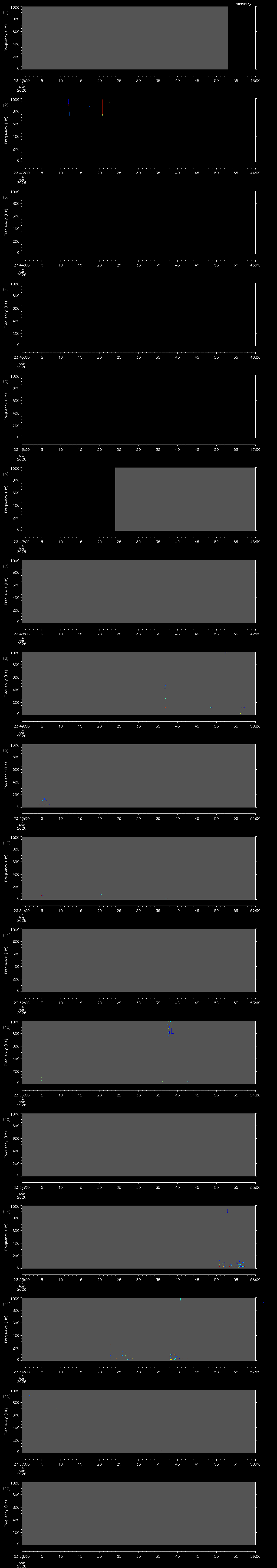 | Date/time | Sei whale | Fin whale | Right whale | Humpback whale | Other | Duration |