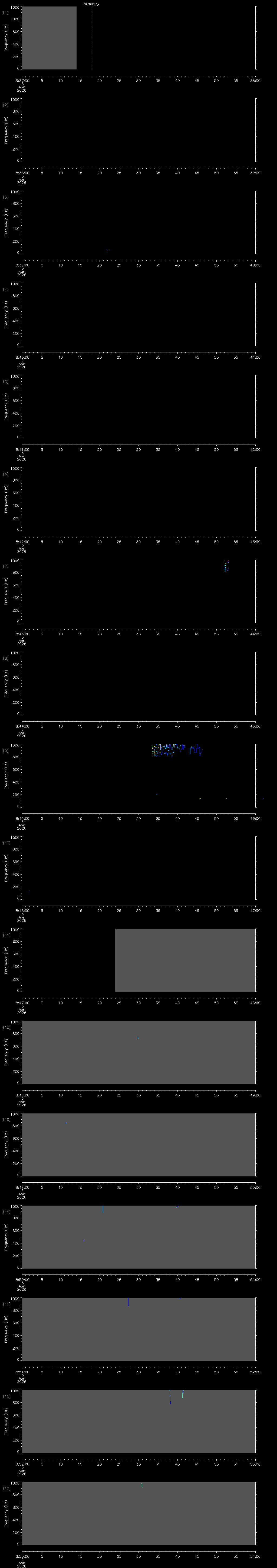 | Date/time | Sei whale | Fin whale | Right whale | Humpback whale | Other | Duration |