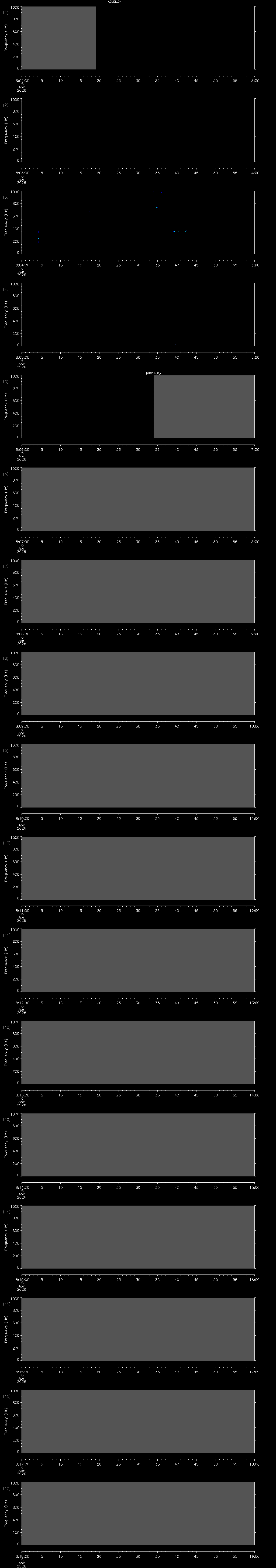 - MUTEON: the hydrophone is muted to assess system noise and to provide a time mark in the audio recording