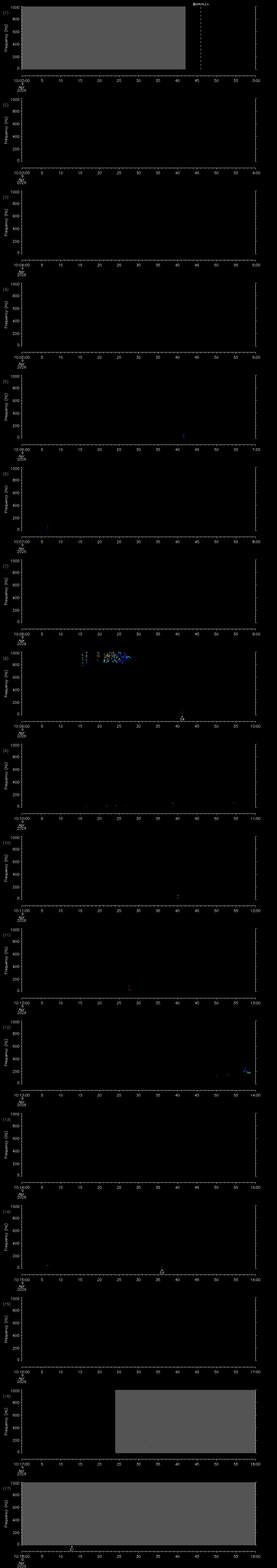| Date/time | Sei whale | Fin whale | Right whale | Humpback whale | Other | Duration |