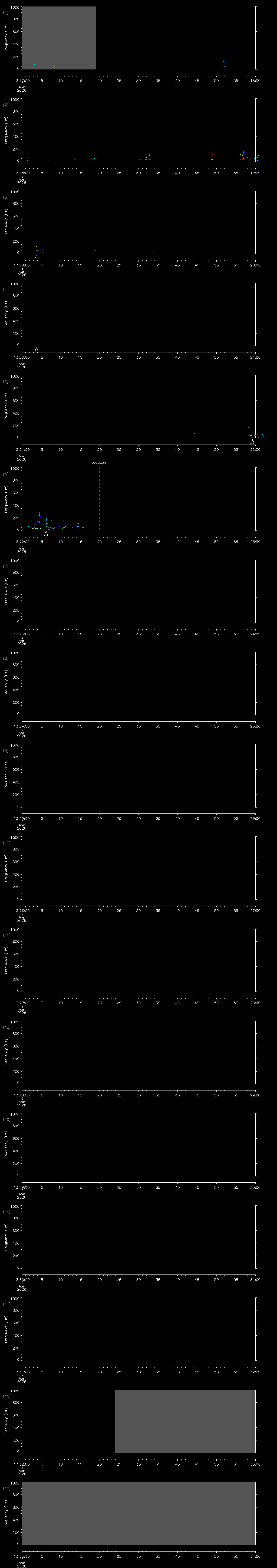 - MUTEON: the hydrophone is muted to assess system noise and to provide a time mark in the audio recording