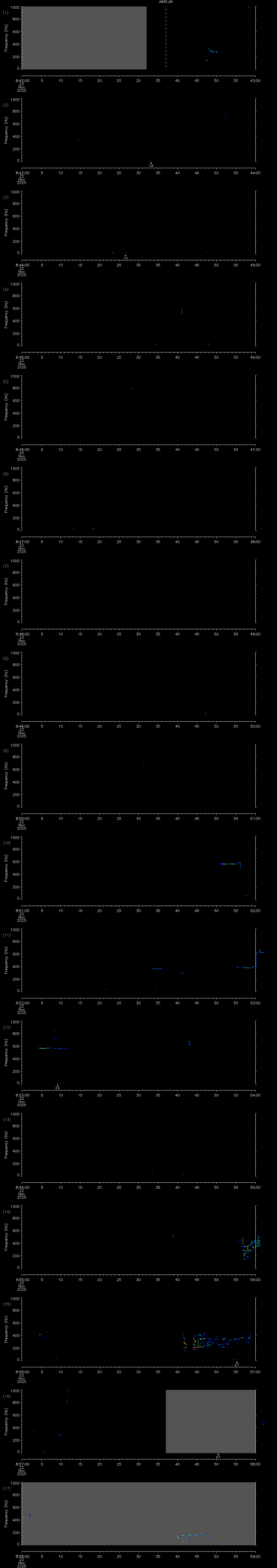 - MUTEON: the hydrophone is muted to assess system noise and to provide a time mark in the audio recording