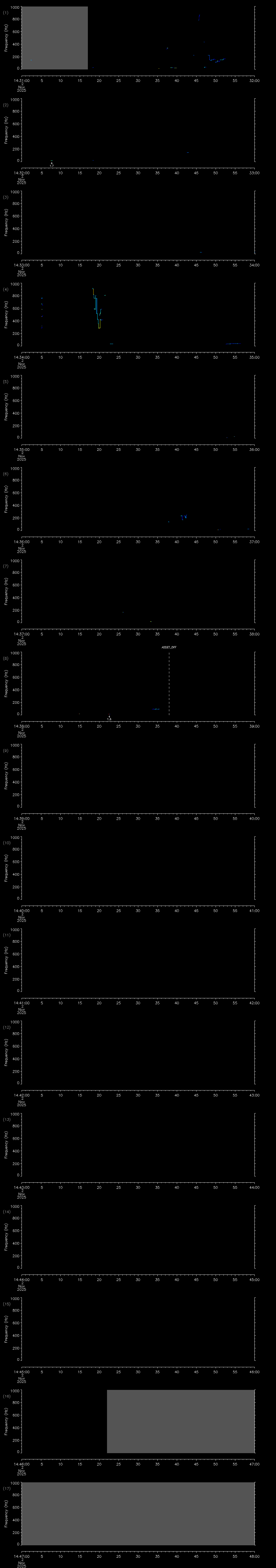 - MUTEON: the hydrophone is muted to assess system noise and to provide a time mark in the audio recording