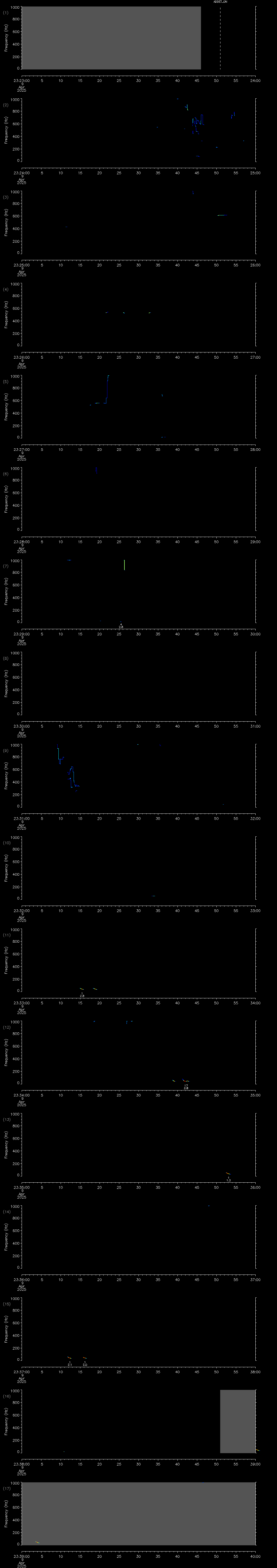 - MUTEON: the hydrophone is muted to assess system noise and to provide a time mark in the audio recording
