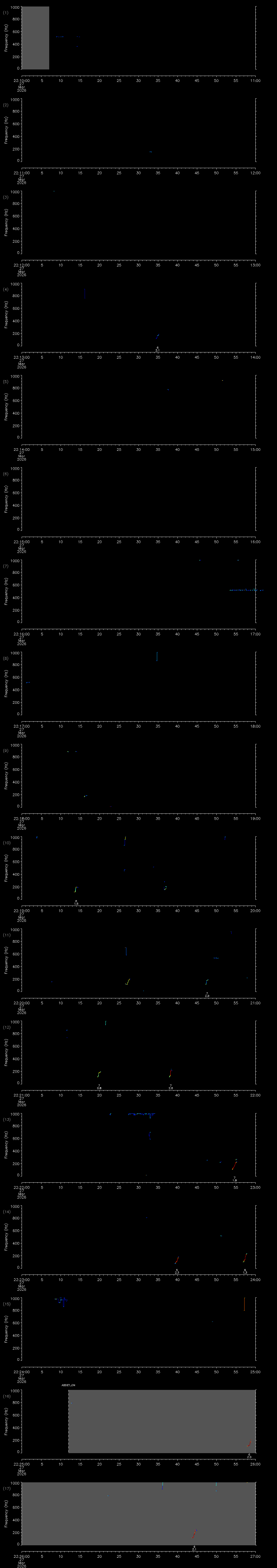 - MUTEON: the hydrophone is muted to assess system noise and to provide a time mark in the audio recording