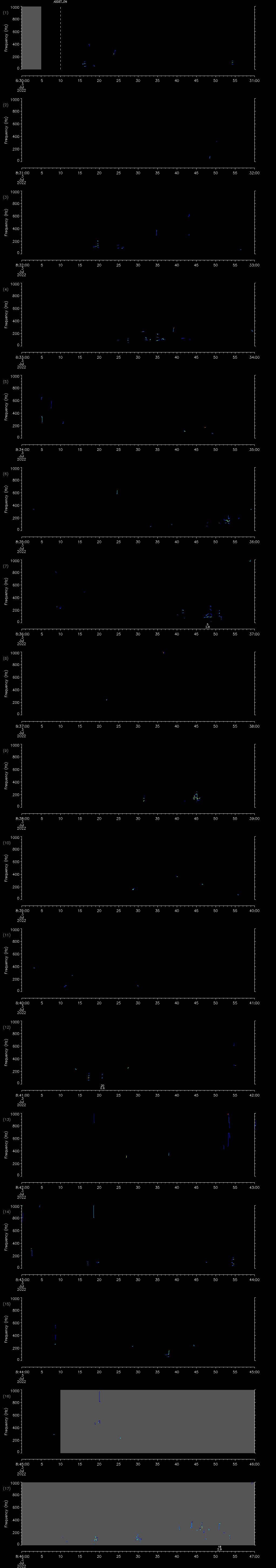 - MUTEON: the hydrophone is muted to assess system noise and to provide a time mark in the audio recording