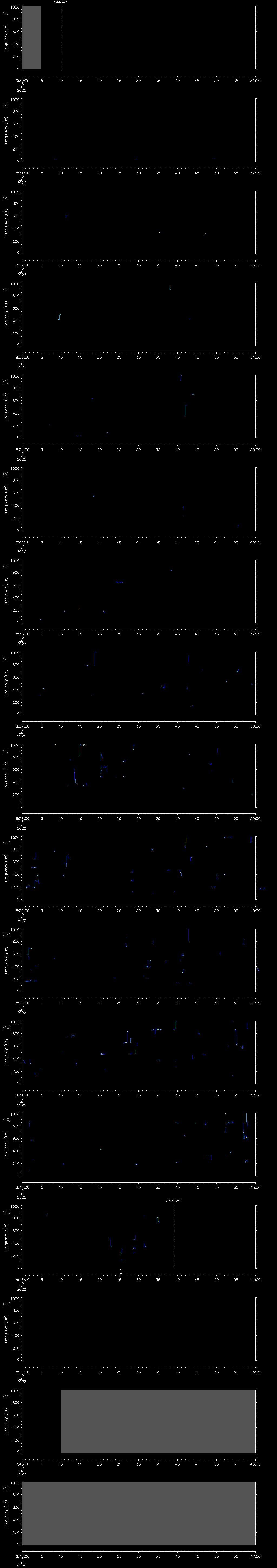 - MUTEON: the hydrophone is muted to assess system noise and to provide a time mark in the audio recording