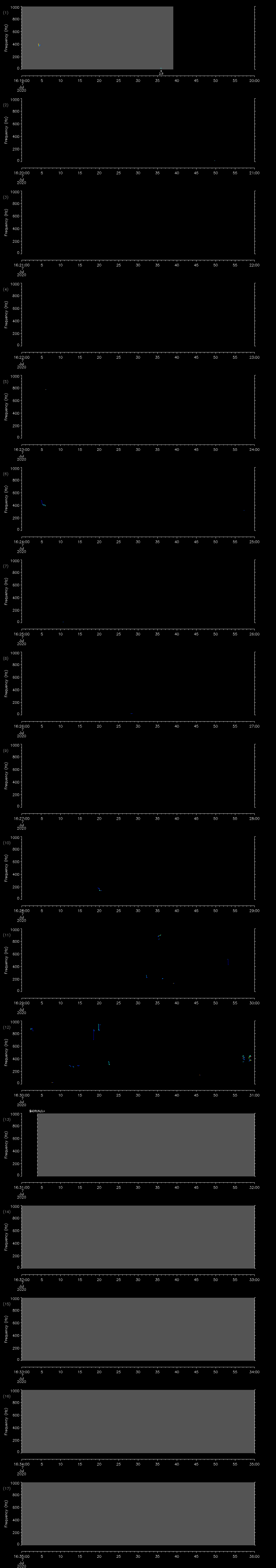 - MUTEON: the hydrophone is muted to assess system noise and to provide a time mark in the audio recording