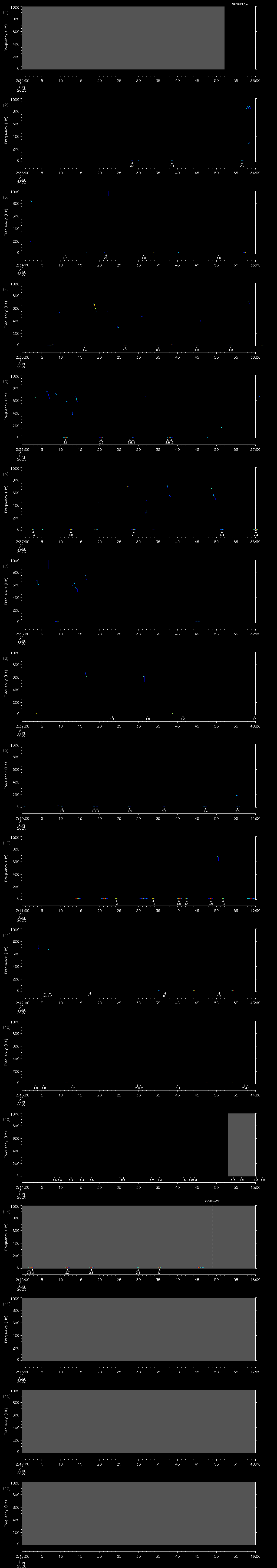 - MUTEON: the hydrophone is muted to assess system noise and to provide a time mark in the audio recording