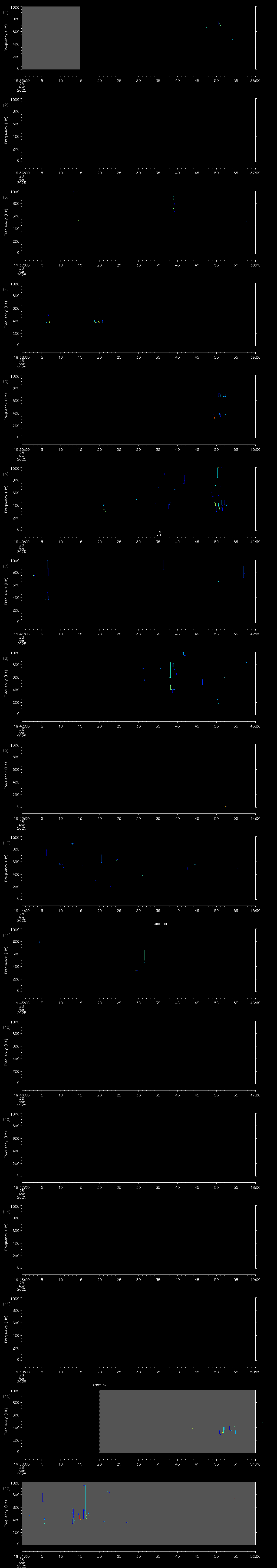 - MUTEON: the hydrophone is muted to assess system noise and to provide a time mark in the audio recording