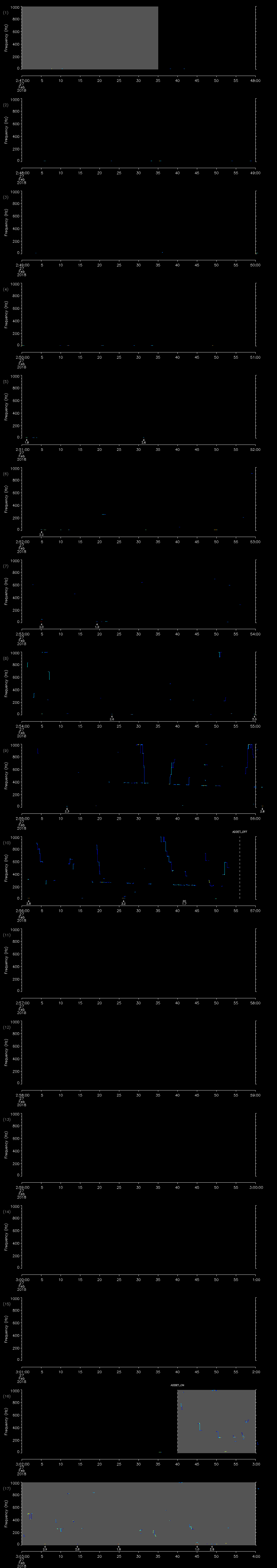 - MUTEON: the hydrophone is muted to assess system noise and to provide a time mark in the audio recording