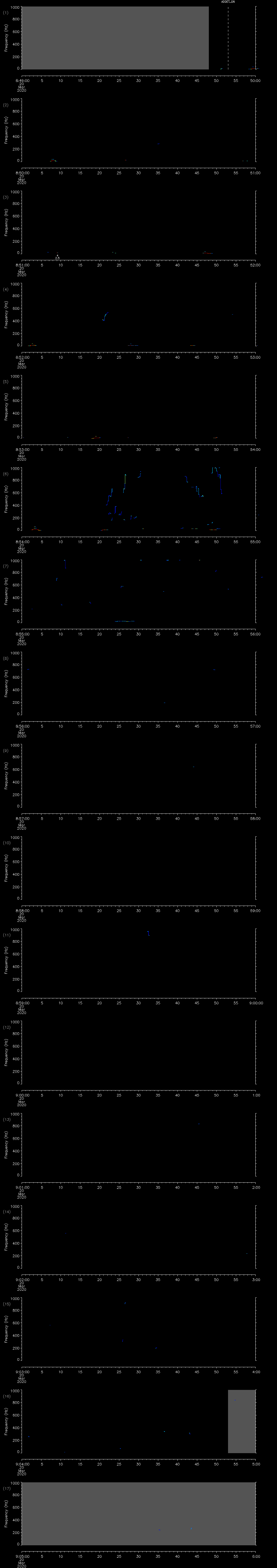 | Date/time | Sei whale | Fin whale | Right whale | Humpback whale | Other | Duration |