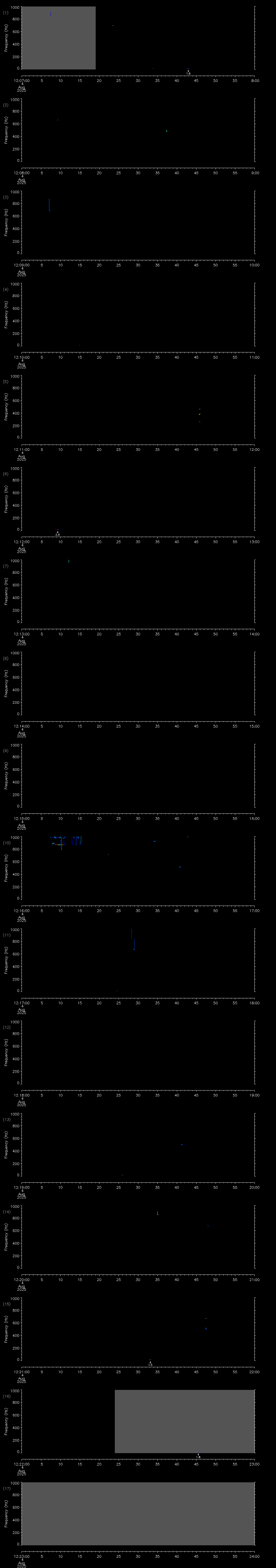 | Date/time | Sei whale | Fin whale | Right whale | Humpback whale | Other | Duration |