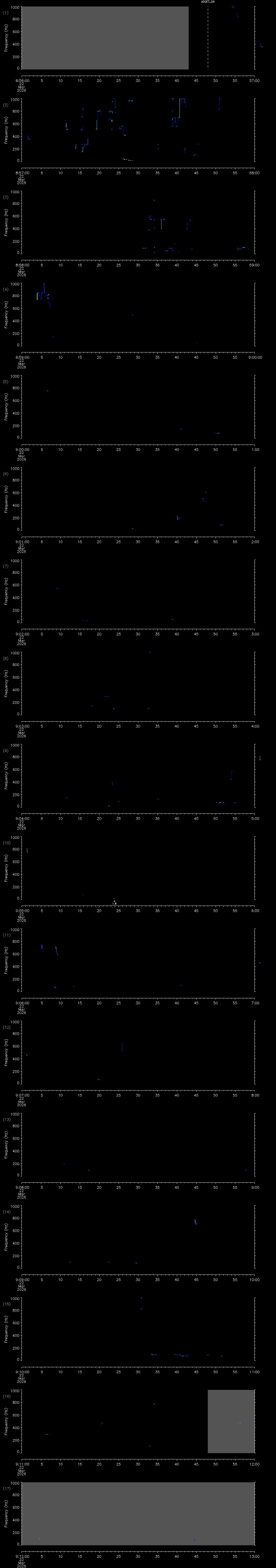 - MUTEON: the hydrophone is muted to assess system noise and to provide a time mark in the audio recording