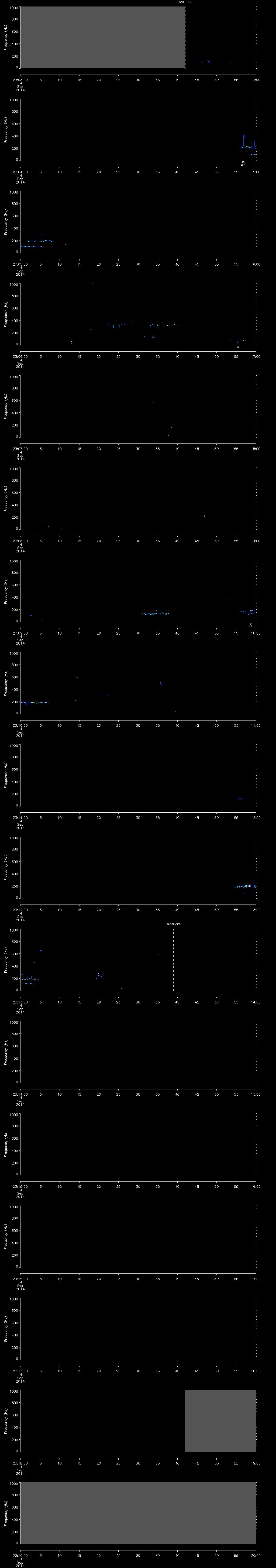 - MUTEON: the hydrophone is muted to assess system noise and to provide a time mark in the audio recording