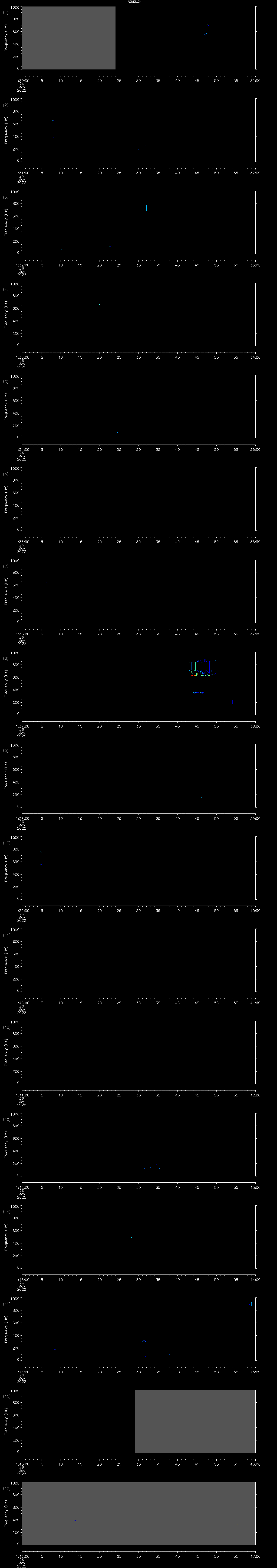 - MUTEON: the hydrophone is muted to assess system noise and to provide a time mark in the audio recording