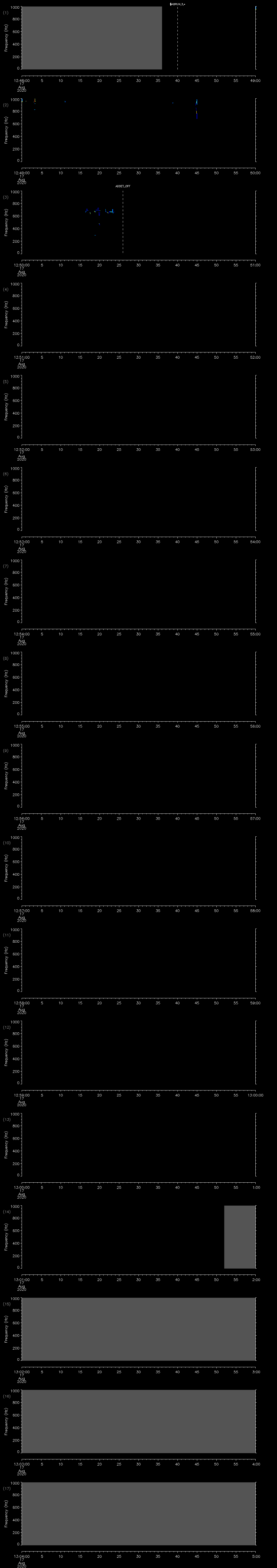 - MUTEON: the hydrophone is muted to assess system noise and to provide a time mark in the audio recording