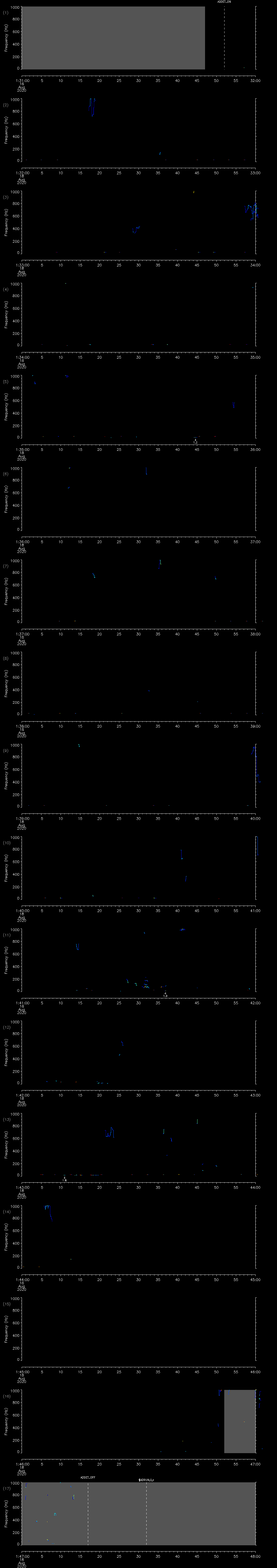 - MUTEON: the hydrophone is muted to assess system noise and to provide a time mark in the audio recording