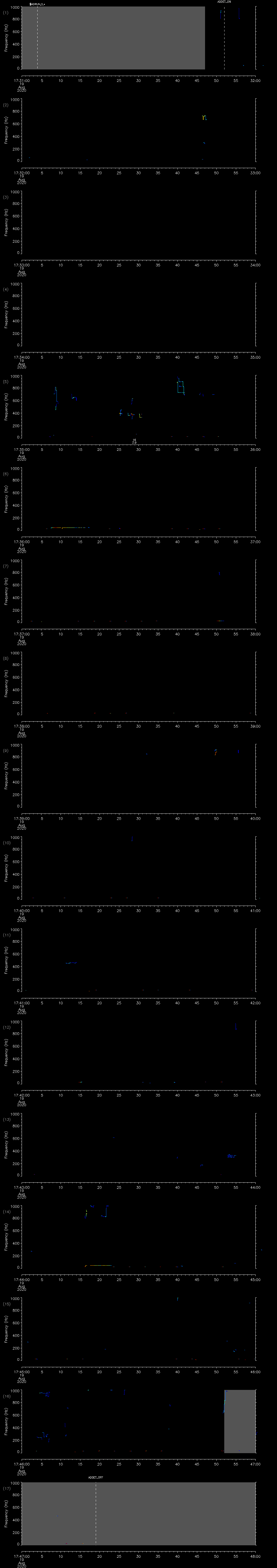 - MUTEON: the hydrophone is muted to assess system noise and to provide a time mark in the audio recording