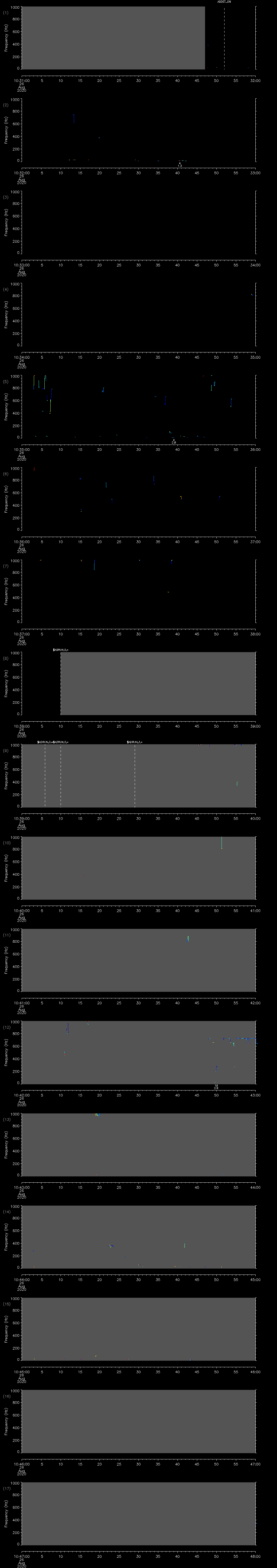 - MUTEON: the hydrophone is muted to assess system noise and to provide a time mark in the audio recording