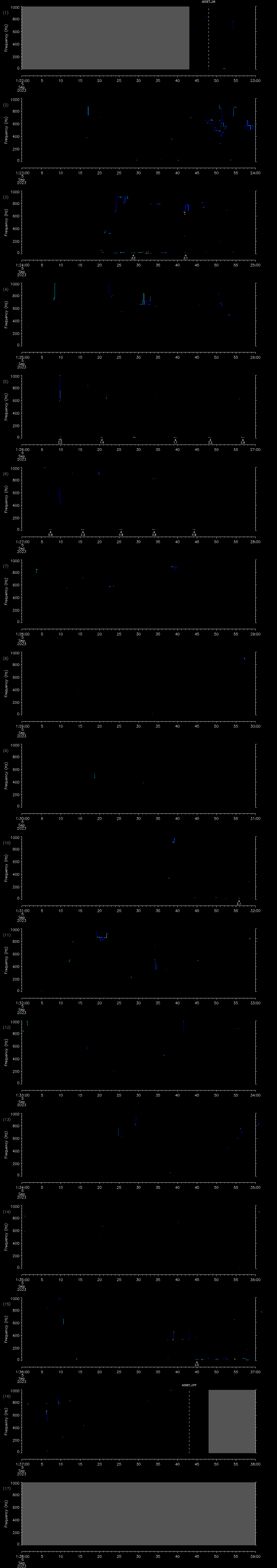 - MUTEON: the hydrophone is muted to assess system noise and to provide a time mark in the audio recording