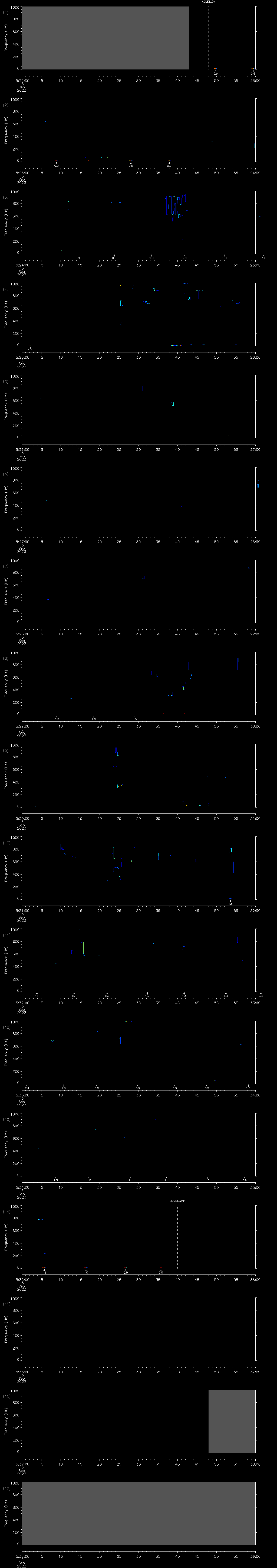 - MUTEON: the hydrophone is muted to assess system noise and to provide a time mark in the audio recording