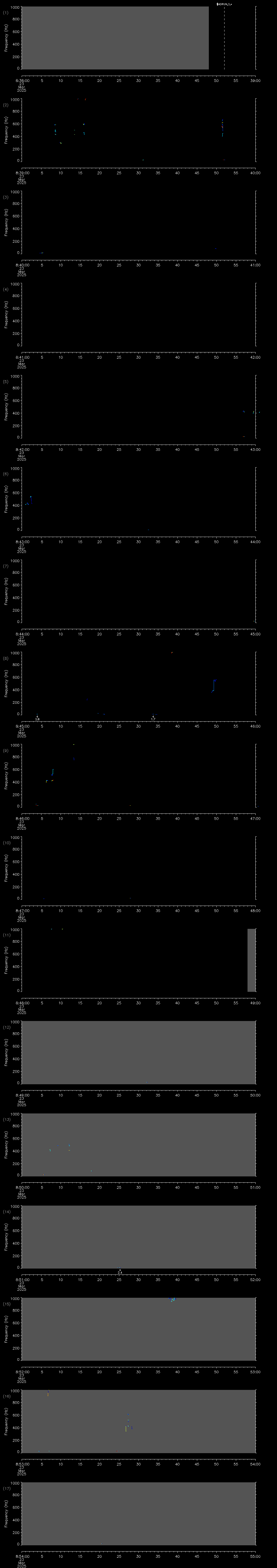 | Date/time | Sei whale | Fin whale | Right whale | Humpback whale | Other | Duration |