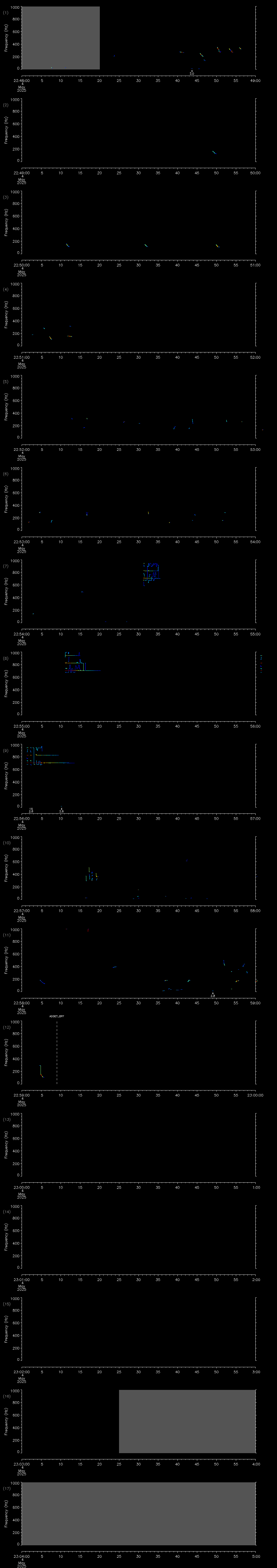 - MUTEON: the hydrophone is muted to assess system noise and to provide a time mark in the audio recording