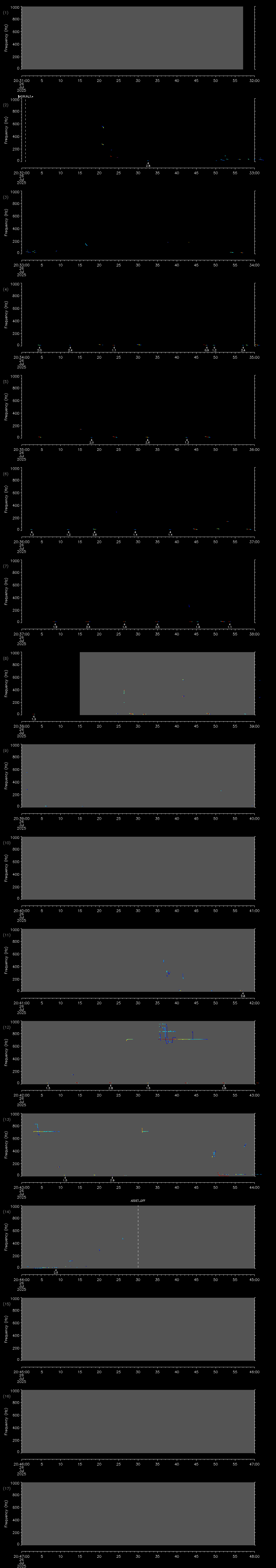 - MUTEON: the hydrophone is muted to assess system noise and to provide a time mark in the audio recording