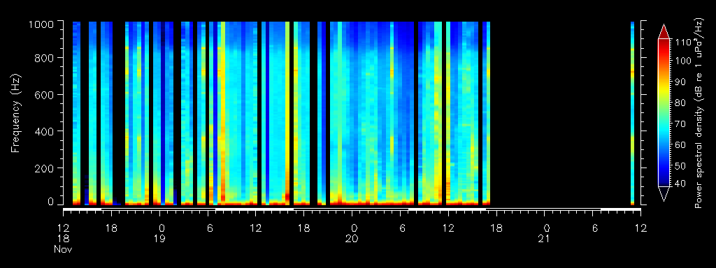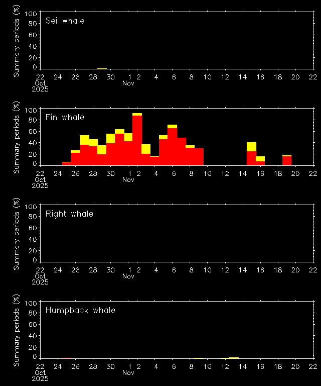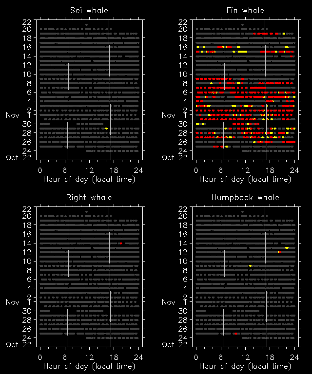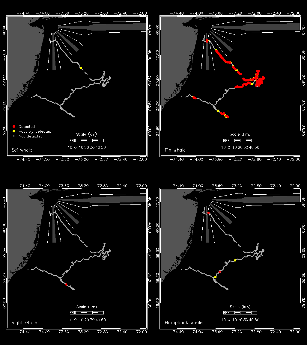What types of sounds are we monitoring? Find examples of the sounds right, fin, sei and humpback whales make here.