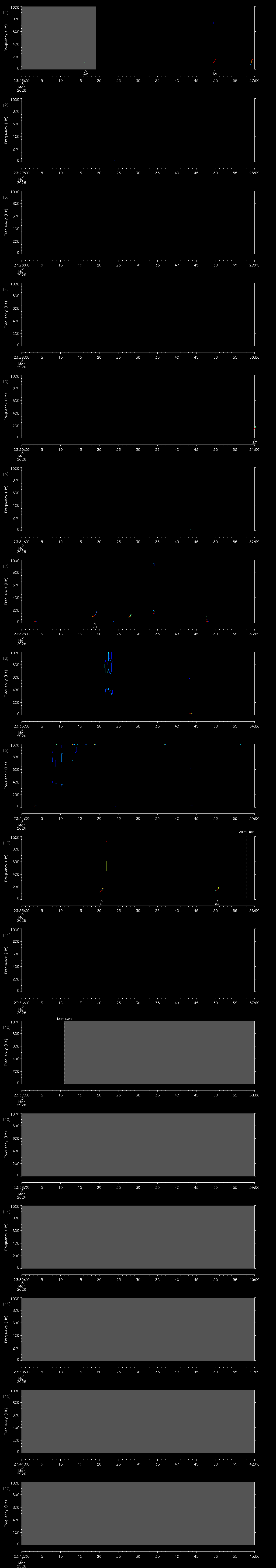 - MUTEON: the hydrophone is muted to assess system noise and to provide a time mark in the audio recording