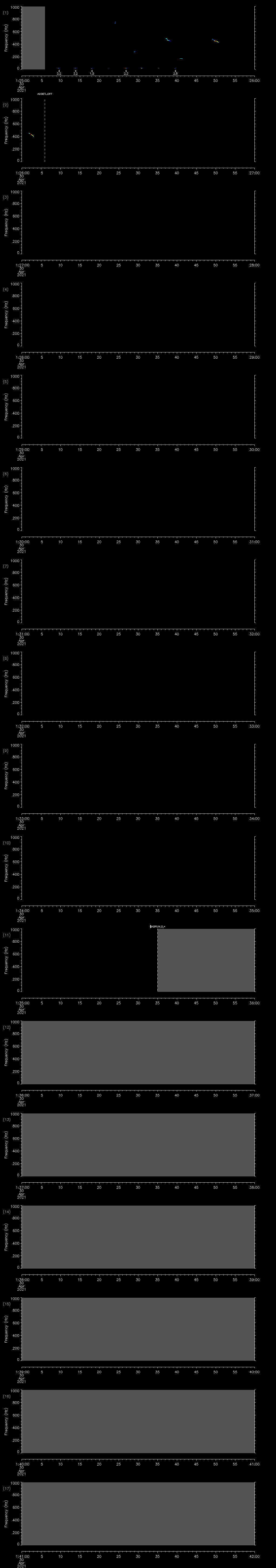 - MUTEON: the hydrophone is muted to assess system noise and to provide a time mark in the audio recording