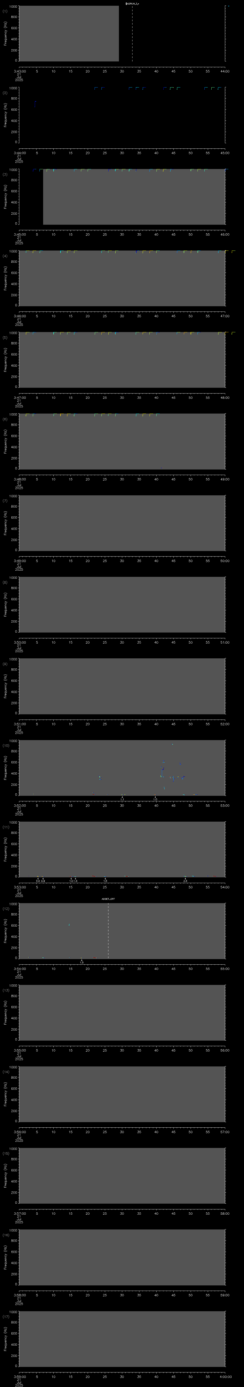 - MUTEON: the hydrophone is muted to assess system noise and to provide a time mark in the audio recording