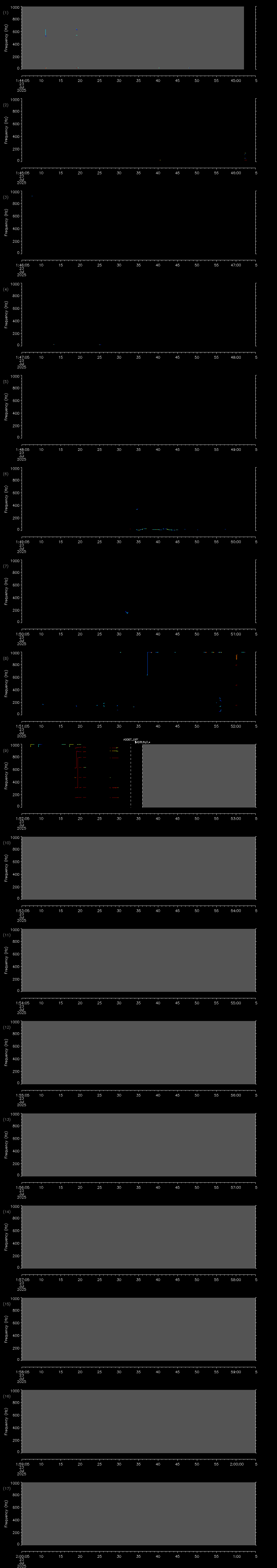 - MUTEON: the hydrophone is muted to assess system noise and to provide a time mark in the audio recording