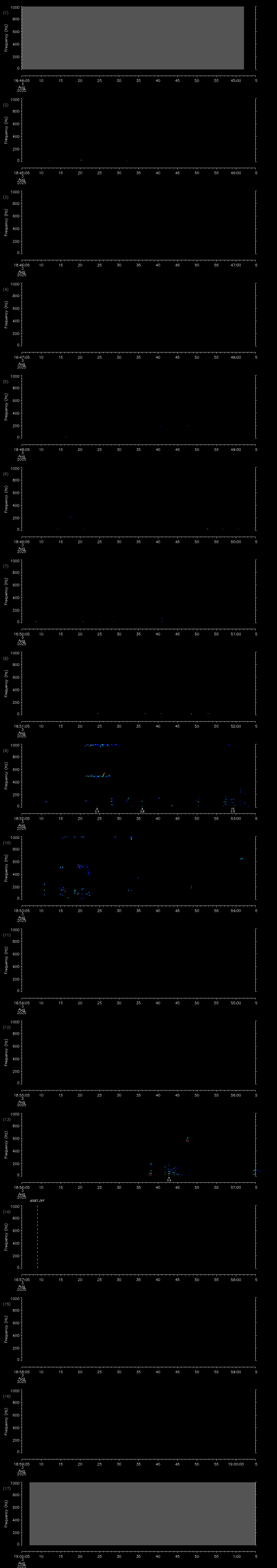 - MUTEON: the hydrophone is muted to assess system noise and to provide a time mark in the audio recording