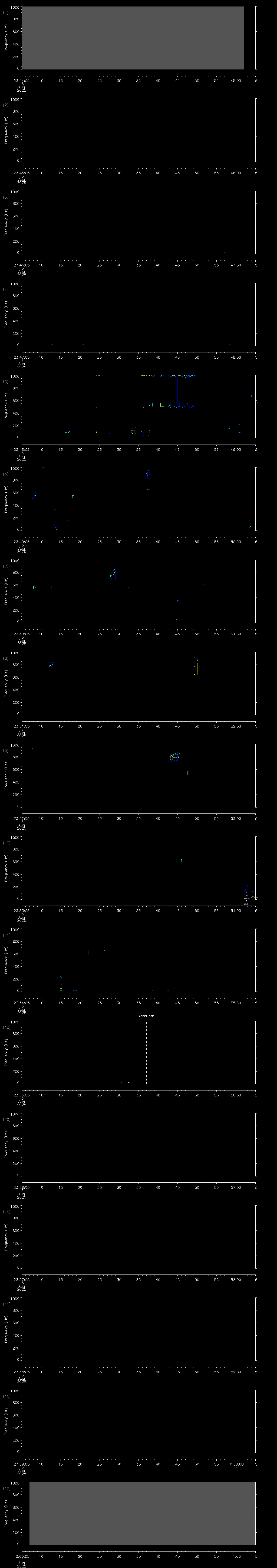 - MUTEON: the hydrophone is muted to assess system noise and to provide a time mark in the audio recording