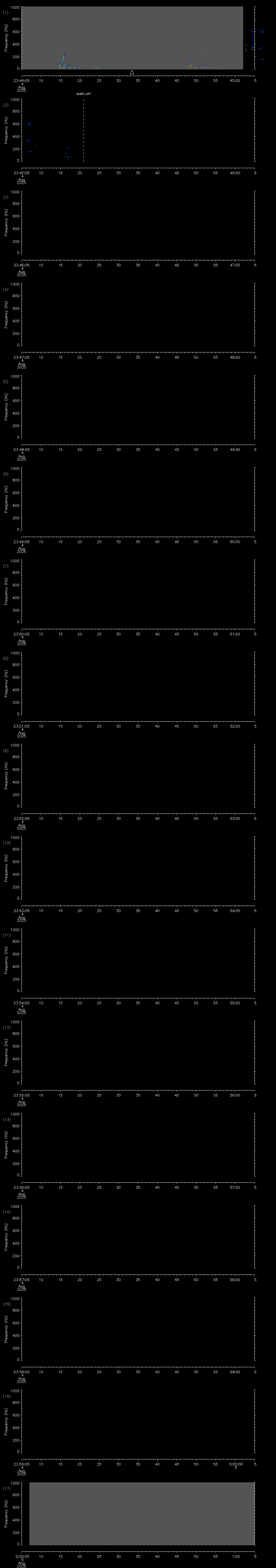 - MUTEON: the hydrophone is muted to assess system noise and to provide a time mark in the audio recording