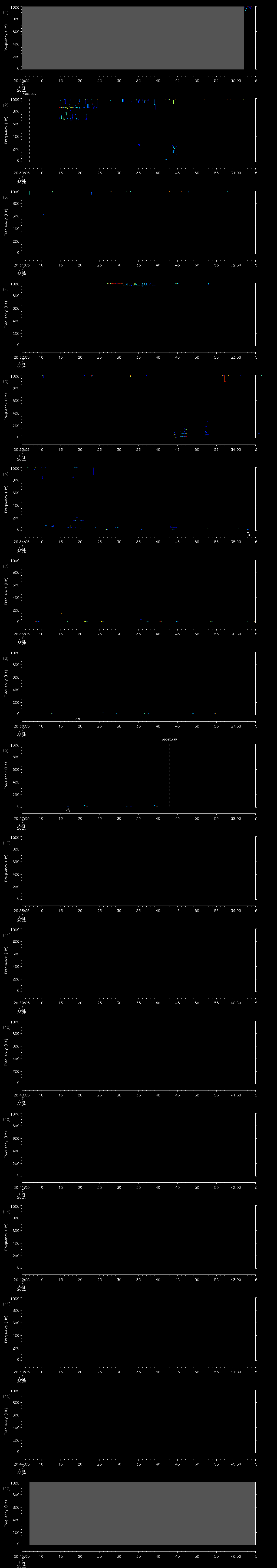- MUTEON: the hydrophone is muted to assess system noise and to provide a time mark in the audio recording