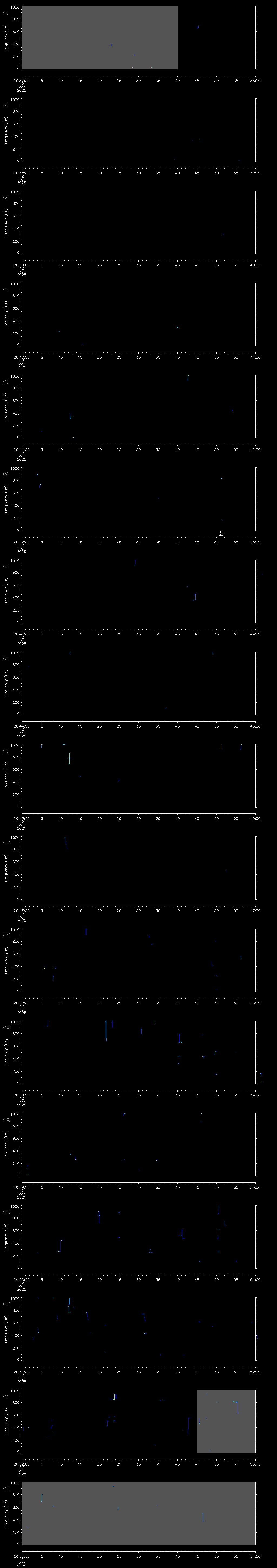 | Date/time | Sei whale | Fin whale | Right whale | Humpback whale | Other | Duration |