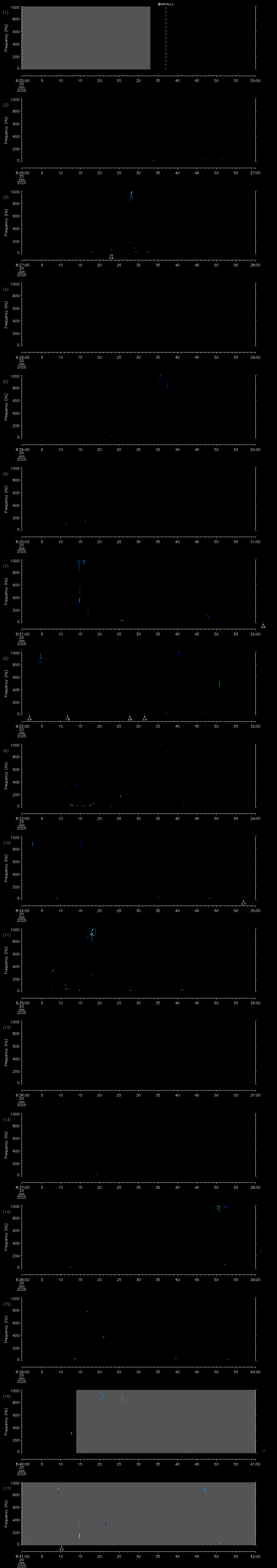 | Date/time | Sei whale | Fin whale | Right whale | Humpback whale | Other | Duration |