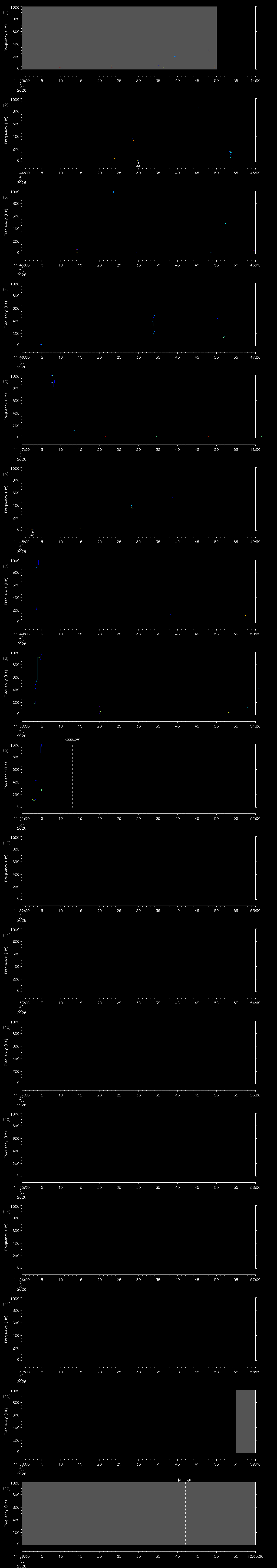 - MUTEON: the hydrophone is muted to assess system noise and to provide a time mark in the audio recording
