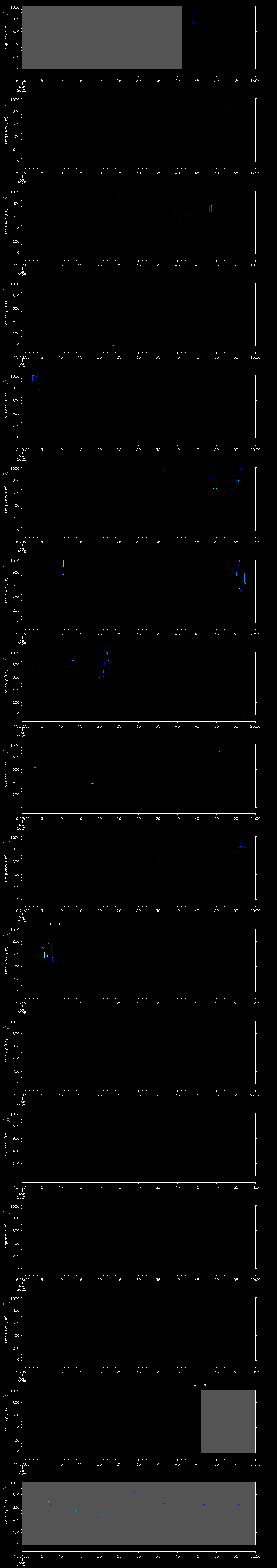 - ADDET_OFF: a maximum of 8 KB of pitch track data per hour is transmitted by the glider. The ADDET_OFF message indicates that this limit has been reached.